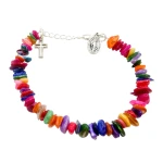 Bransoletka z masy perłowej w formie delikatnej sieczki to subtelna i elegancka biżuteria, która zachwyca naturalnym połyskiem oraz lekkością formy. Perłowa kolorystyka nadaje całości ponadczasowy charakter, łącząc klasyczną estetykę z duchowym przesłaniem.
