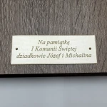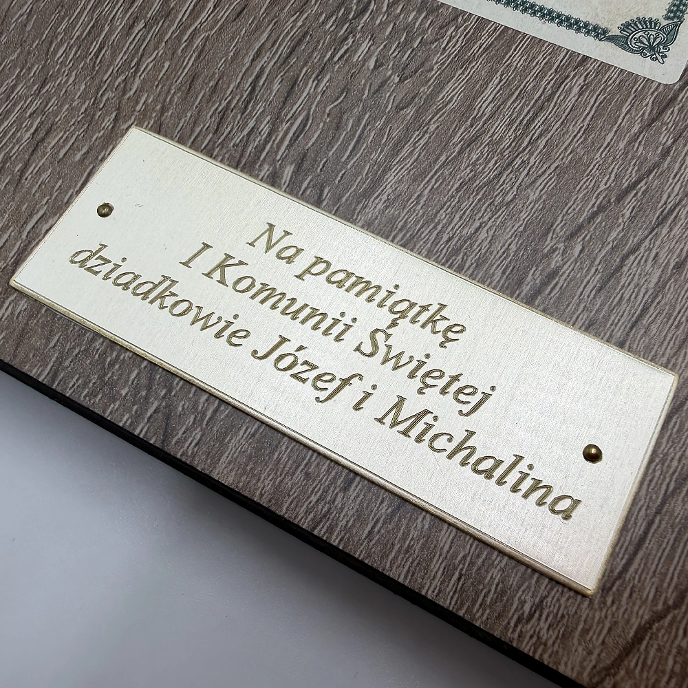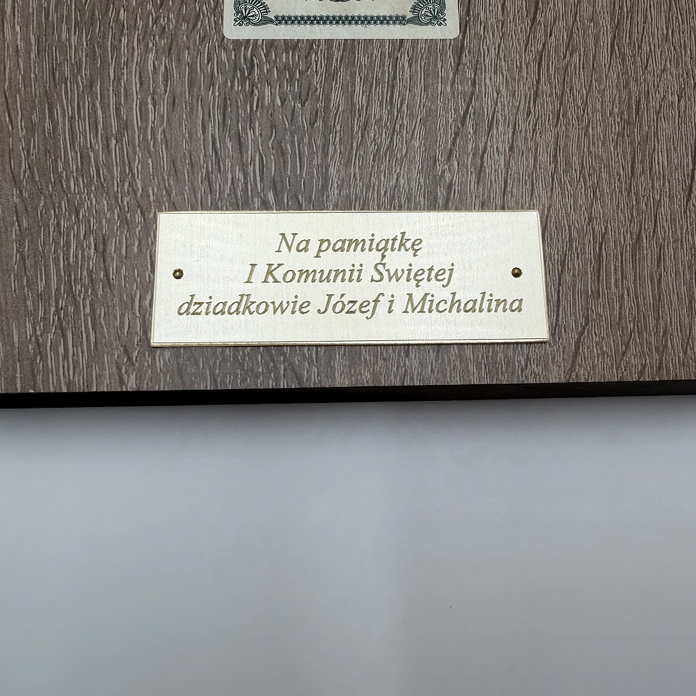 Oferujemy możliwość wykonania personalizowanego graweru na eleganckiej, posrebrzanej tabliczce, który stanowi doskonałe uzupełnienie ikony, obrazu lub ryngrafu (w przypadku ryngrafu, grawer wykonywany jest bezpośrednio na odwrocie ryngrafu). To wyjątkowy sposób, aby nadać przedmiotowi indywidualny charakter i uczynić go niepowtarzalną pamiątką na długie lata.