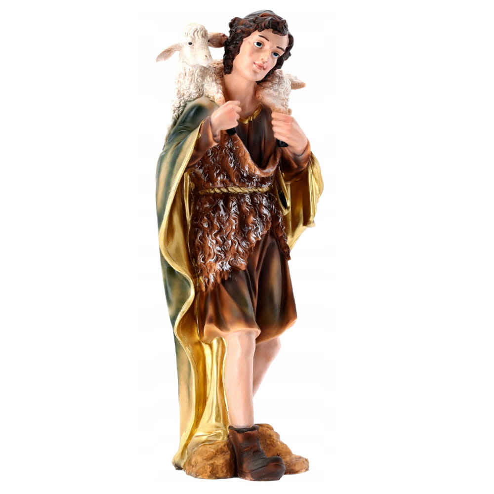 Figura Pasterza to nieodzowny element każdej klasycznej szopki bożonarodzeniowej. Przedstawia jedną z najważniejszych postaci biblijnego wydarzenia narodzin Jezusa – pokornego pasterza, który jako jeden z pierwszych oddał hołd Dzieciątku. Dzięki imponującym wymiarom (25 × 28 × 70 cm) oraz realistycznemu wykończeniu figura przyciąga wzrok i wnosi wyjątkową atmosferę do każdej aranżacji świątecznej.