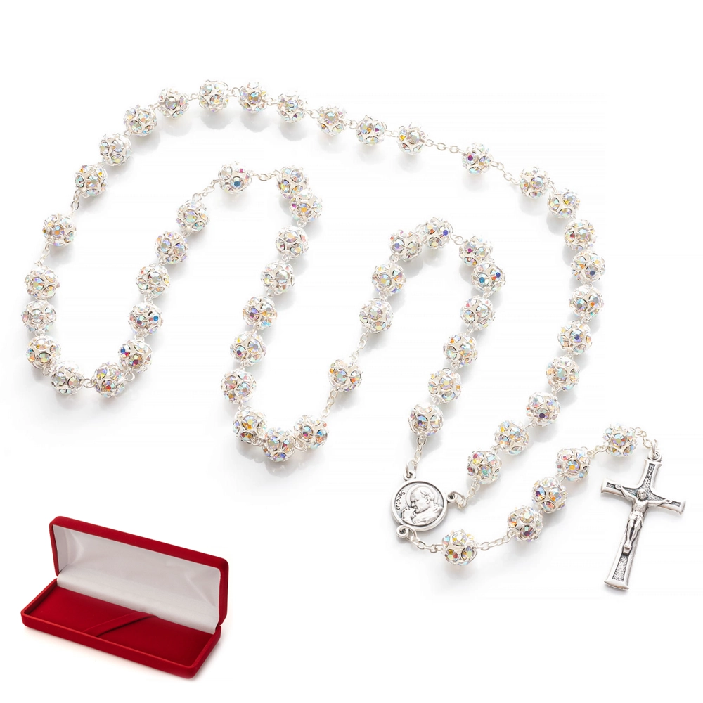 Różaniec Preciosa 10 mm – Kryształ AB – Modlitwa, Blask i Duchowa Elegancja