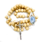 Jasny odcień drewna symbolizuje pokorę, oddanie i duchową głębię, podkreślając wyjątkowy charakter różańca.