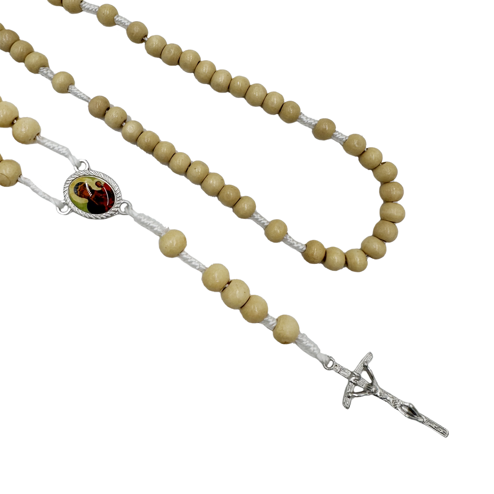 Różaniec Drewniany na Sznurku z Matką Boską Częstochowską – Jasny