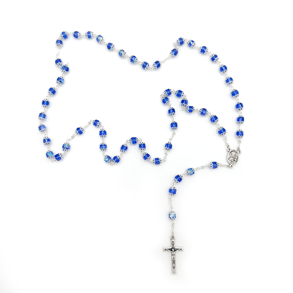Różaniec kryształowy z kapturkiem w kolorze błękitnym to doskonały wybór na wyjątkowy upominek: