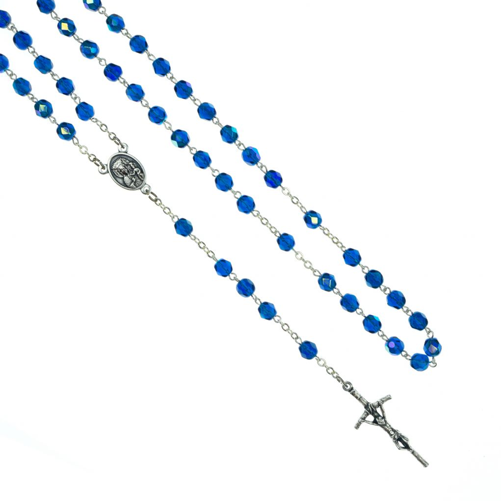 Różaniec kryształowy w kolorze ciemnym niebieskim to wyjątkowy pomysł na prezent: