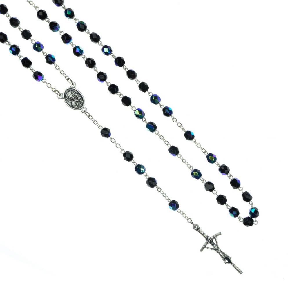 Elegancki różaniec o długości 46 cm z kryształkami 6 mm, które pięknie mienią się w świetle. Wyposażony w dwustronny medalik z Matką Boską i Janem Pawłem II oraz krzyżyk 4 x 1,5 cm. Idealny do modlitwy i na wyjątkowy prezent.