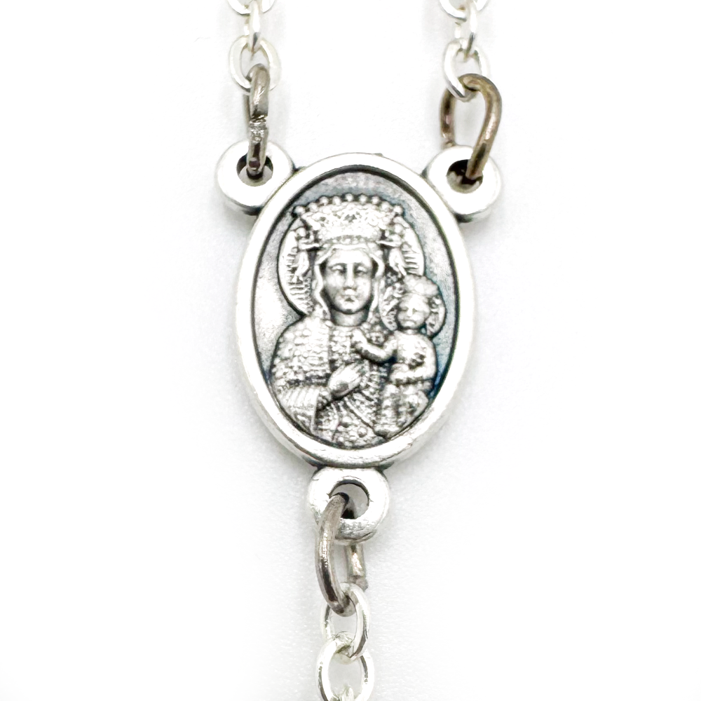Różaniec kryształowy w odcieniu czarnym to połączenie elegancji, precyzji wykonania i duchowej symboliki. Wykonany z wysokiej jakości, syntetycznych kryształków, które pięknie załamują światło, ten różaniec staje się nie tylko narzędziem modlitwy, ale również wyjątkową ozdobą.