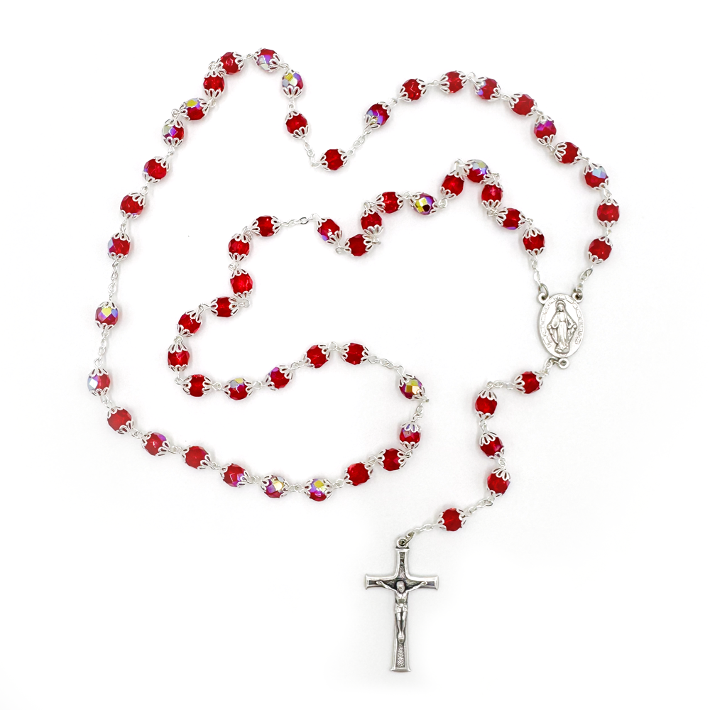 Różaniec Kryształowy z Kapturkiem Czerwony – Elegancja i Głęboka Symbolika