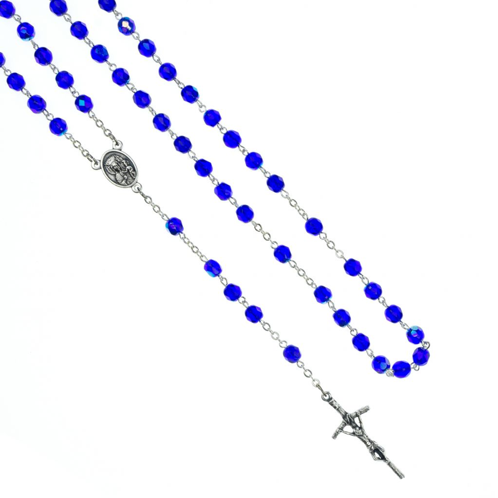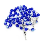 Elegancki różaniec o długości 46 cm z kryształkami 6 mm, które pięknie mienią się w świetle. Wyposażony w dwustronny medalik z Matką Boską i Janem Pawłem II oraz krzyżyk 4 x 1,5 cm. Idealny do modlitwy i na wyjątkowy prezent.