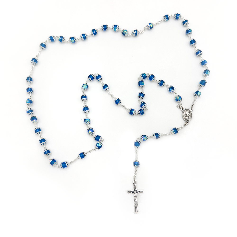 Różaniec kryształowy z kapturkiem w kolorze niebieskim to doskonały wybór na wyjątkowy upominek: