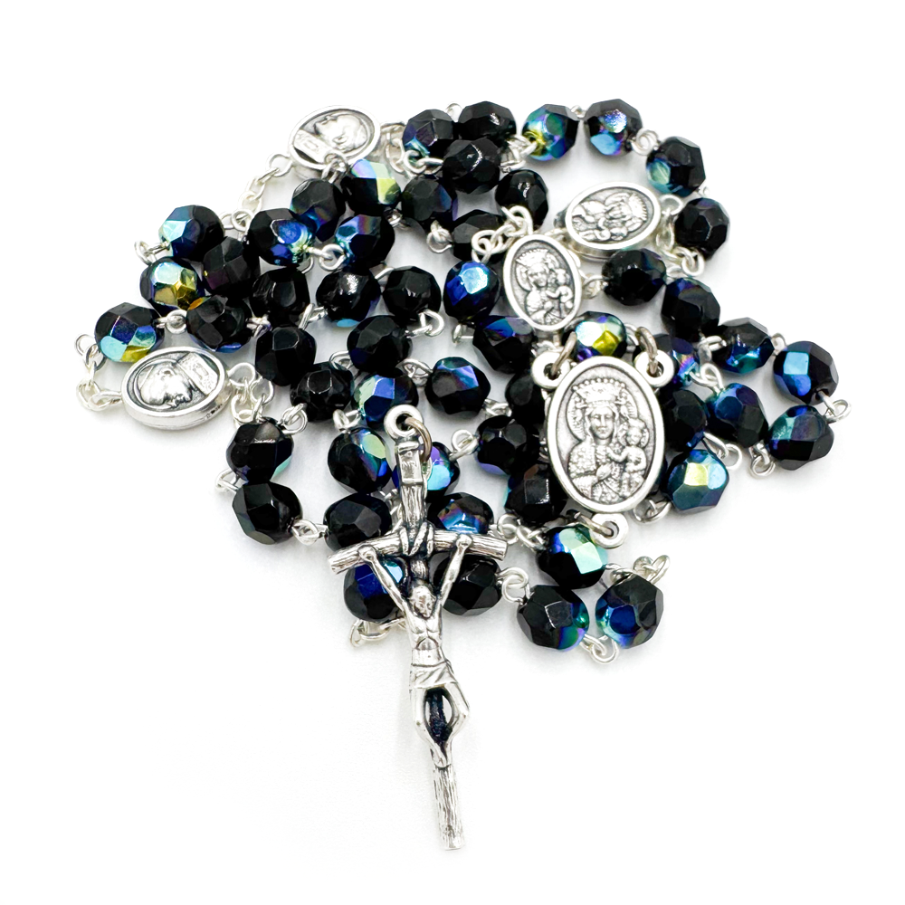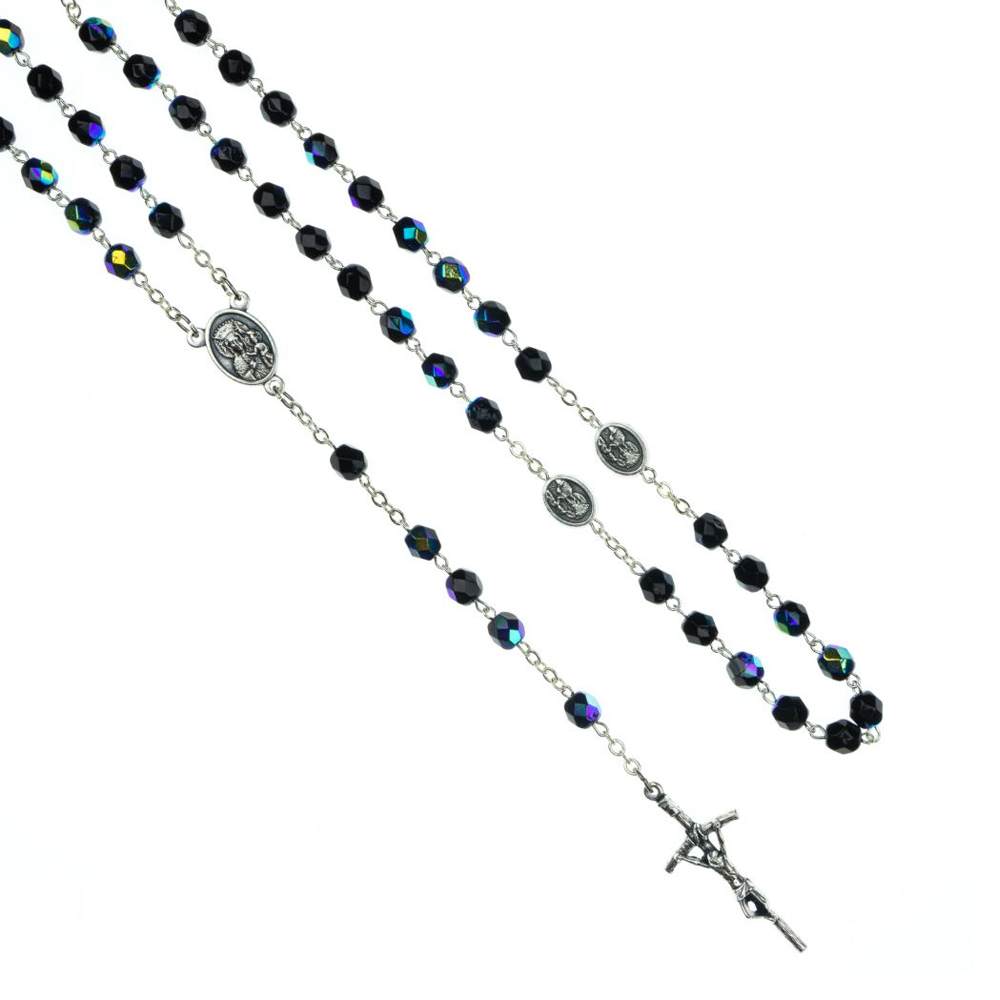 Różaniec kryształowy z medalikami – czarny
