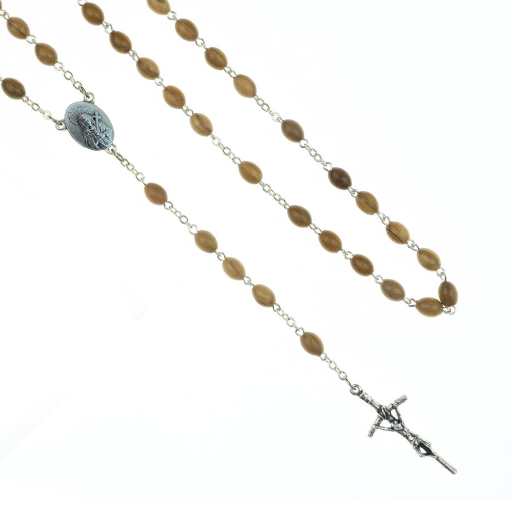 Różaniec z drzewa oliwnego z Ziemią Świętą
