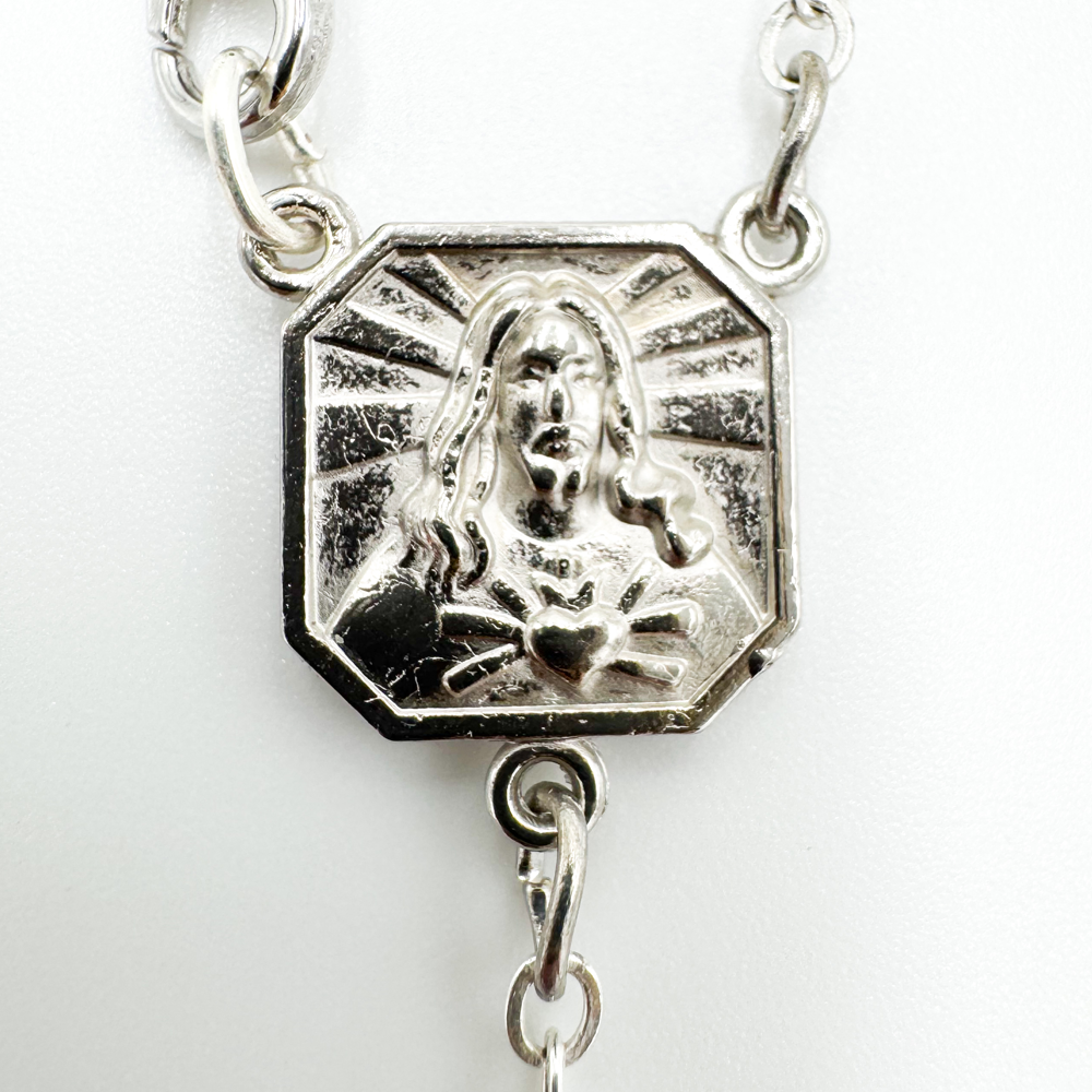 Kompaktowy różaniec o długości 18 cm z hematytowymi koralikami 8 x 4 mm, krzyżykiem 4 x 2 cm oraz dwustronnym medalikiem (Św. Krzysztof / Serce Pana Jezusa). Wyposażony w zapięcie, idealny do noszenia na nadgarstku jako talizman ochronny i modlitewny.