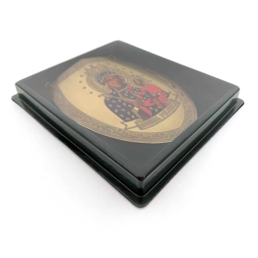 Dodatkowe malowanie nadaje głębi i elegancji, dzięki czemu ryngraf wygląda wyjątkowo efektownie i przyciąga uwagę. To połączenie tradycyjnej symboliki i nowoczesnej technologii wykonania.