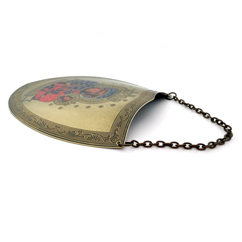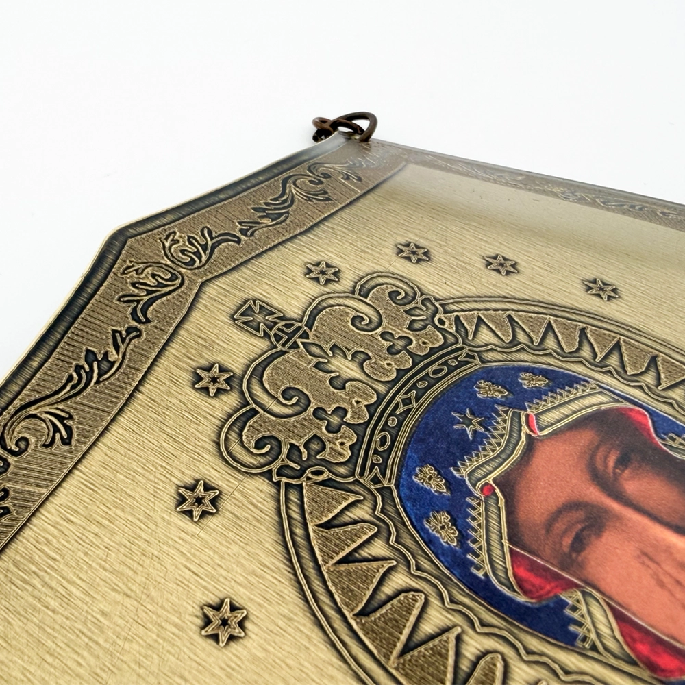 Grawerowany ryngraf wykonany z mosiądzu. Wysokość 17 cm, można zawiesić na ścianie. Piękny prezent i wyjątkowa dekoracja wnętrza.