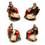 Miniaturowa figurka przedstawiająca Świętą Rodzinę. Wykonana z trwałej żywicy i pomalowana w naturalne barwy. Idealna jako element szopki bożonarodzeniowej lub samodzielna, symboliczna ozdoba świąteczna.