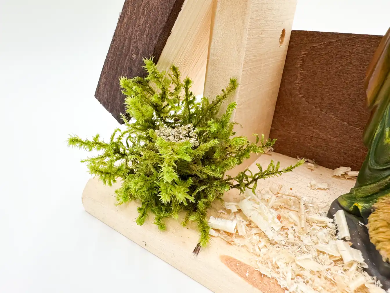 Produkt wykonany jest z wysokiej jakości drewna i zdobiony naturalnymi elementami. Wybierając tę szopkę, nabywasz niepowtarzalne polskie rękodzieło wykonywane z pasją.