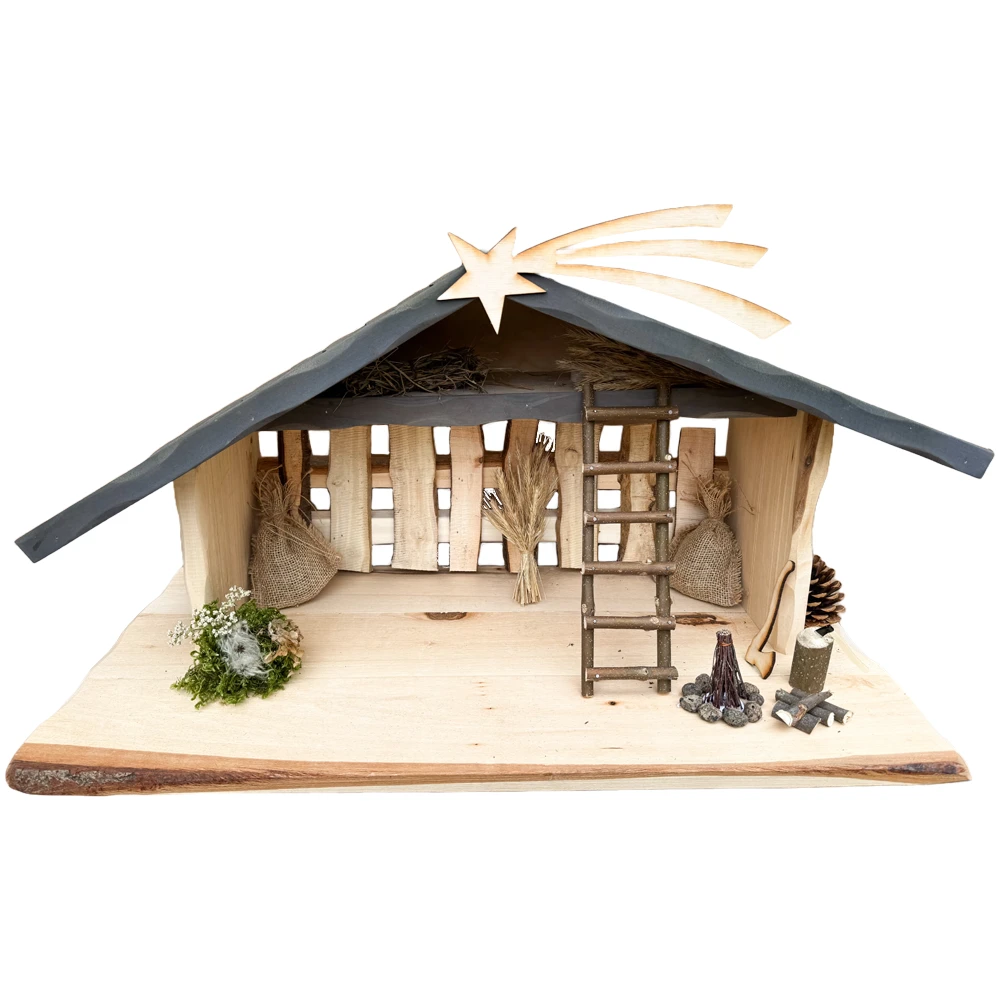 Szopka została stworzona pod zestawy figur o maksymalnej wysokości 21 cm. Szopka bez figur już prezentuje się pięknie ale istnieje możliwość zakupienia zestawu w naszym sklepie w celu wypełnienia stajenki.