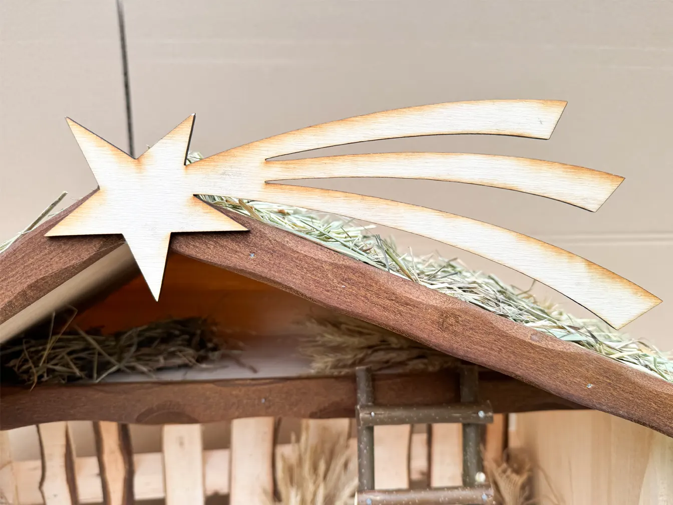 Szopka została wykonana z wysokiej jakości drewna, co zapewnia jej trwałość i estetykę.